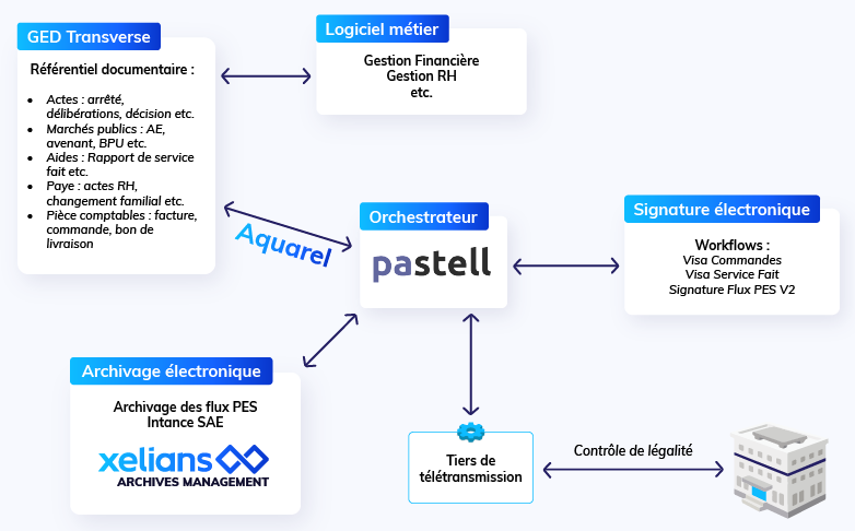 Au sein de Xelians Intégration Services, nous préconisons, lorsque le contexte le permet, la mise en place d’une stratégie basée sur une GED transverse servant d’outil de centralisation de l’ensemble de la production documentaire d’un établissement. Dans cette perspective, nous avons développé le module Aquarel, qui interface GED et SAE et permet de piloter l’archivage des dossiers directement depuis la GED. |